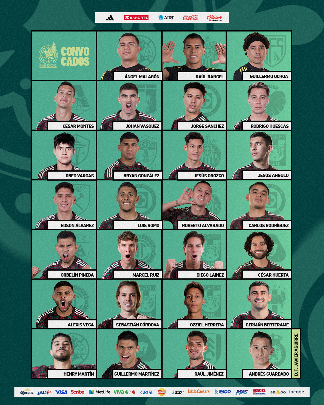 Este llamdo regresa a Guillermo Ochoa, Andrés Guardado, ademas del primer llamado de Germán Berterame y Obed Vargas.