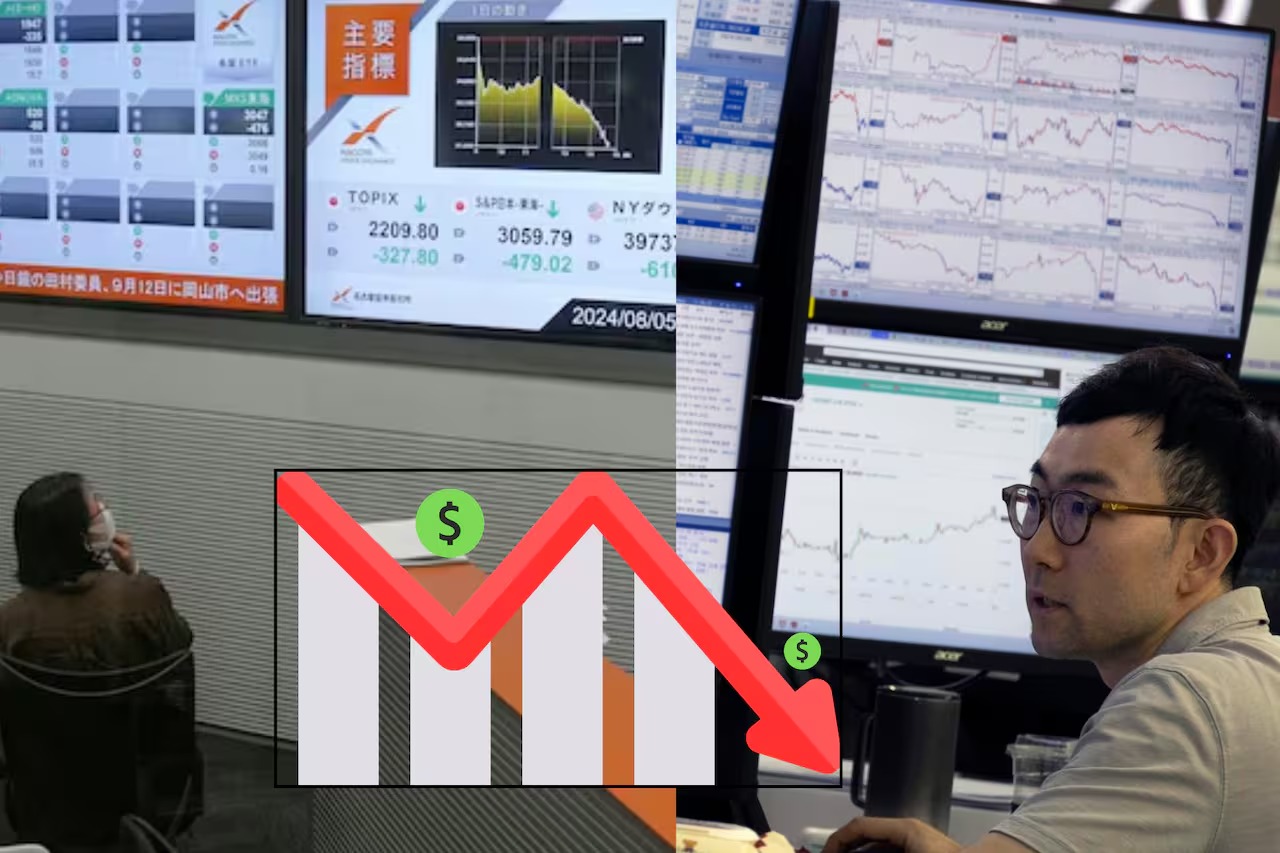 El índice Nikkei de la Bolsa de Tokio sufrió una caída del 12.40% este lunes, marcando su segunda mayor disminución porcentual en la historia.