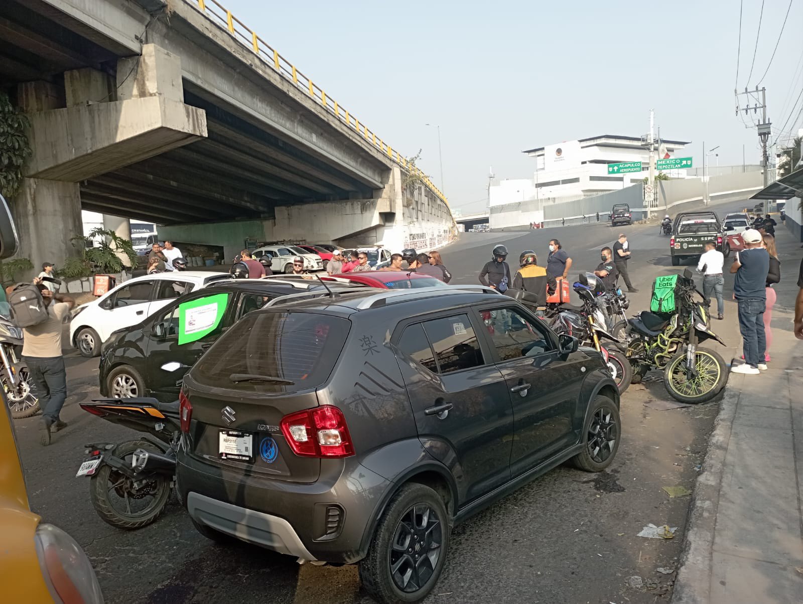 Esta mañana al menos 100 trabajadores de diversas plataformas y aplicaciones, realizaron bloqueo en los principales accesos a Cuernavaca, debido a que uno de sus compañeros de nombre René Villareal fue a prestar un servicio al municipio de Jojutla y ahora cumple ocho días desaparecido.