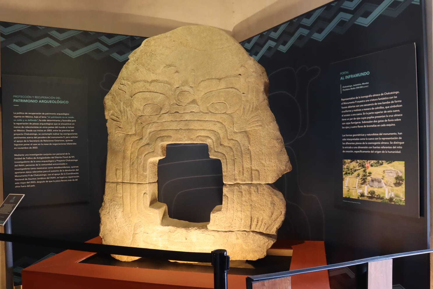 El Monumento 9, al que también se le conoce como el “Portal al Inframundo”, regresó a la zona arqueológica de Chalcatzingo, Morelos, tras ser sustraído hace más de 60 años. Esta escultura olmeca se restauró y se trasladará desde el Palacio de Cortés, en Cuernavaca.