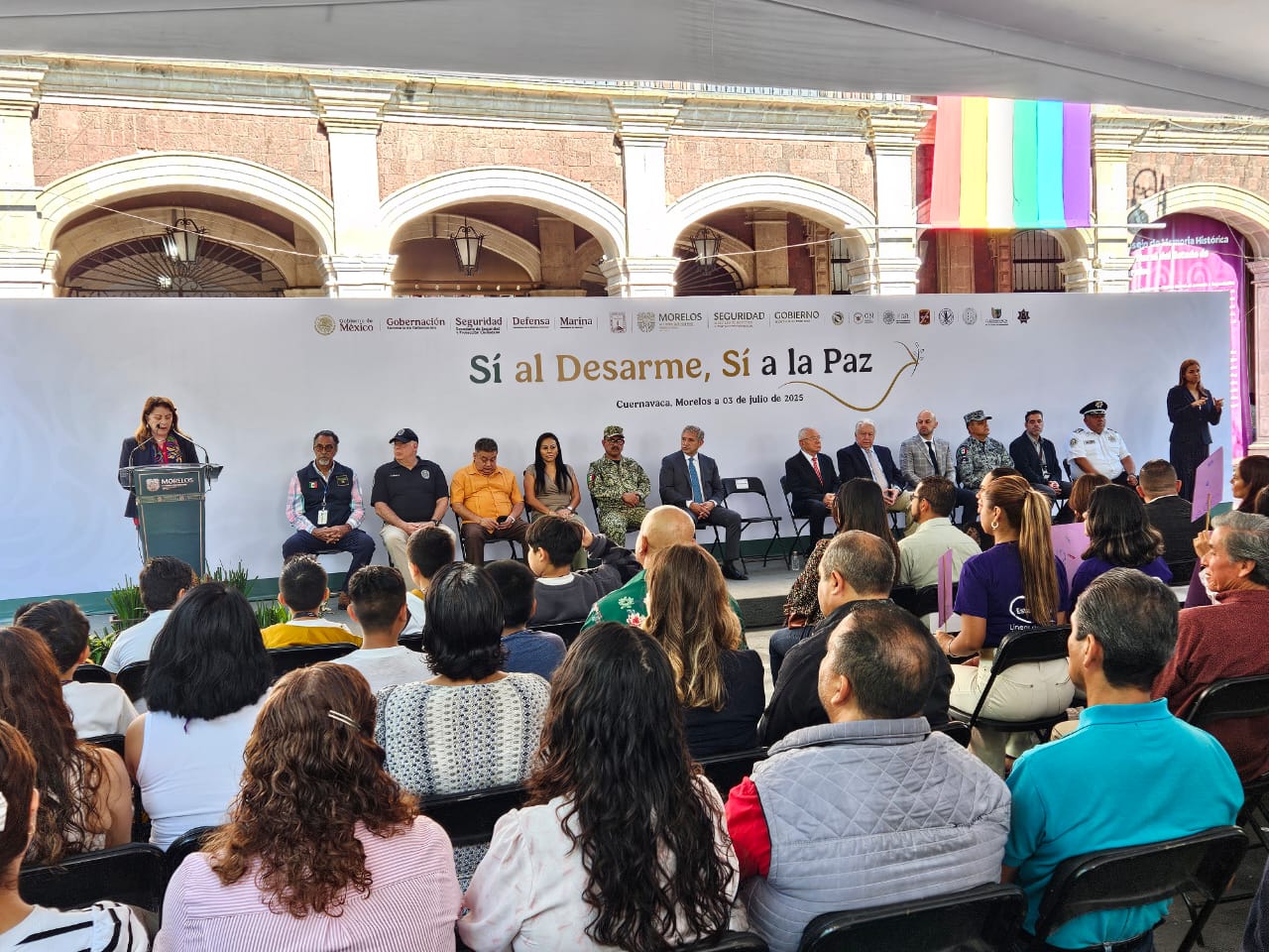 La Gobernadora Margarita González Saravia encabezó el inicio del programa “Sí al Desarme, Sí a la Paz”, que forma parte del eje de Atención a las Causas de la Estrategia Nacional de Seguridad, y que tiene como objetivo el canje voluntario, anónimo y sin consecuencias legales de armas de fuego por dinero en efectivo; asimismo, se realiza el intercambio de juguetes bélicos por juguetes y juegos didácticos.