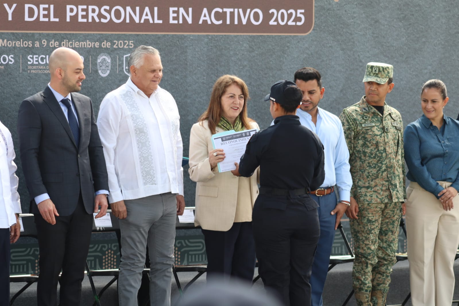 La gobernadora del estado de Morelos, Margarita González Saravia, presidió la Ceremonia de Egreso de la Segunda Generación de Policía de Proximidad y del Personal en activo 2025, donde exhortó a las y los integrantes de las corporaciones de seguridad pública a “servir con honor, lealtad y humanidad”, al tiempo que, refrendó el respaldo permanente de su administración a su labor.
