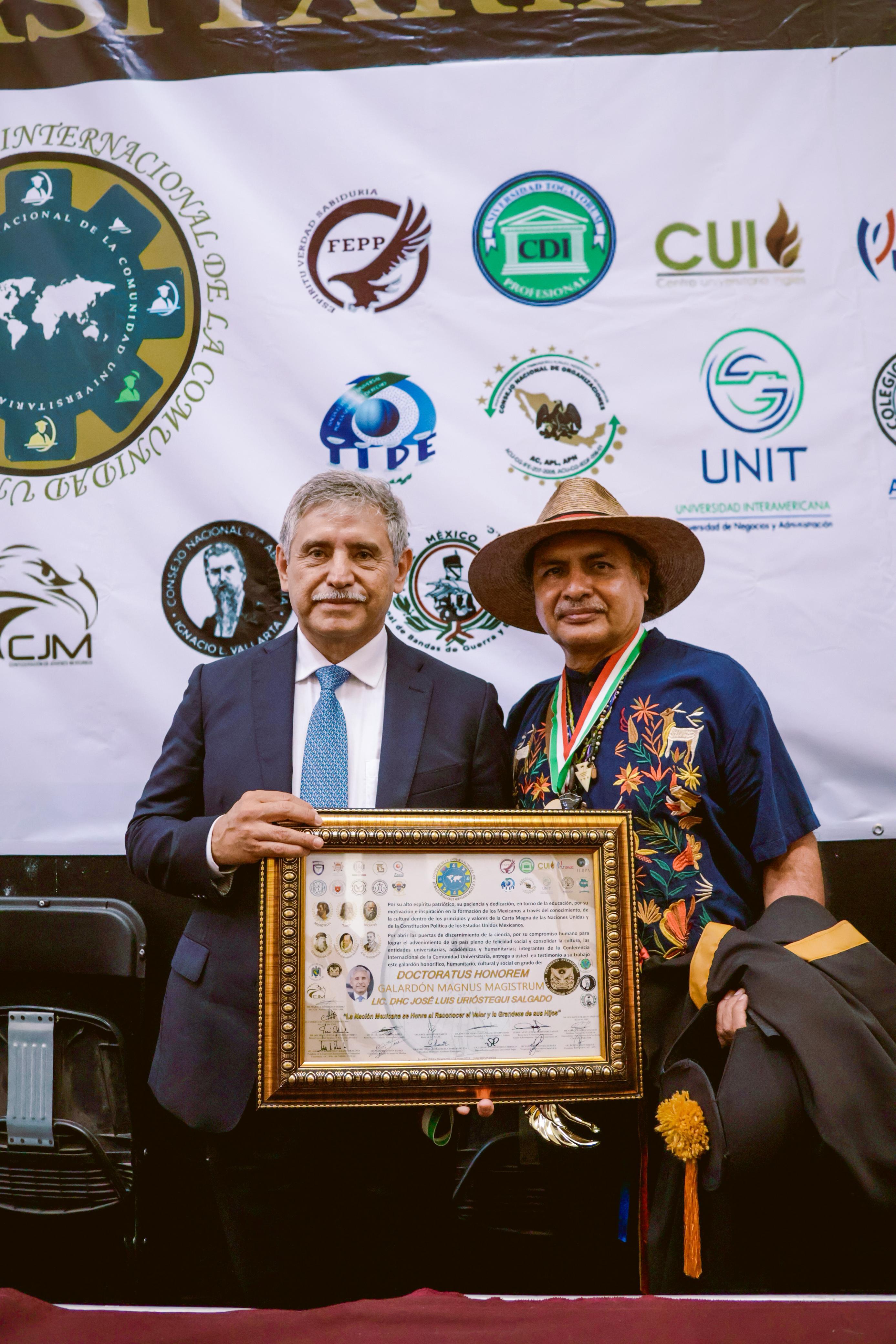 Por su destacada trayectoria y labor al frente de la Presidencia Municipal de Cuernavaca, el alcalde José Luis Urióstegui Salgado fue distinguido en la capital del país con el “Galardón Magnus Magistrum” y la Medalla al Mérito “Padres de la Patria”, otorgados por la Conferencia Internacional de la Comunidad Universitaria.