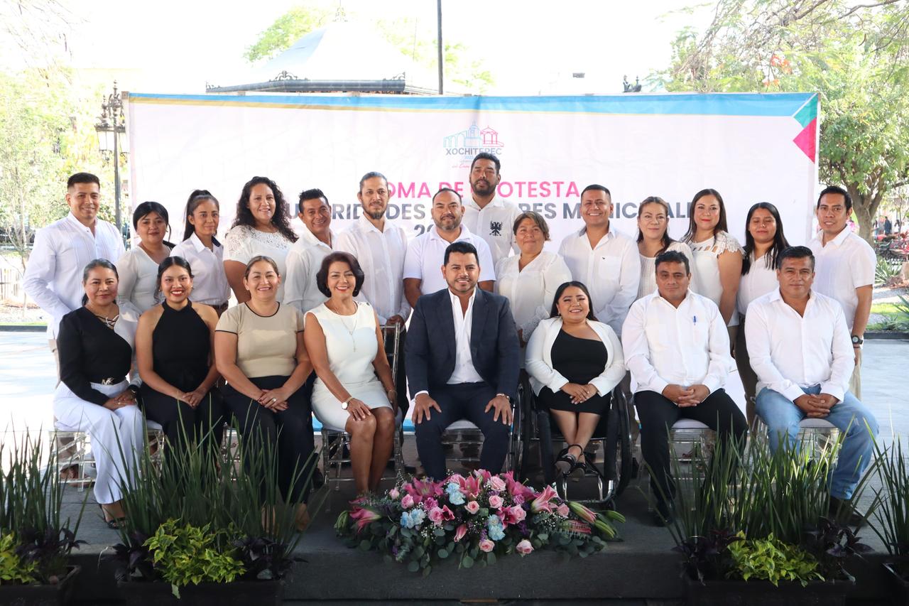 El presidente municipal de Xochitepec, Roberto Flores Zúñiga "Chalo" Flores, tomó protesta a siete mujeres y siete hombres que resultaron elegidos con el voto popular como ayudantes municipales para el periodo 2025-2028. En su discurso, destacó que en esta nueva etapa se trabajará en equipo y con unidad para brindar más y mejores oportunidades a los xochitepequenses.