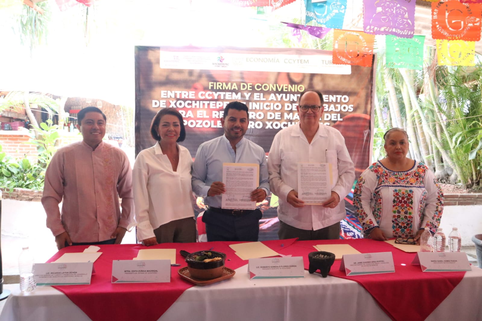 El presidente municipal Roberto “Chalo” Flores firmó un convenio de colaboración con el Consejo de Ciencia y Tecnología del Estado de Morelos (CCyTEM) para comenzar con el proceso de registro de marca del tradicional Pozole Negro, uno de los platillos más emblemáticos del Pueblo Mágico de Xochitepec.