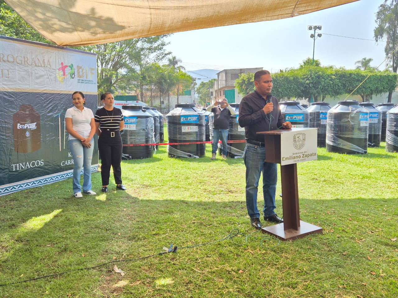 Esta mañana, el alcalde de Emiliano Zapata, Santos Tavárez, llevó a cabo la entrega de más de 250 tinacos a bajo costo. En los próximos días, se abrirá una nueva convocatoria para que los ciudadanos puedan acceder a kits de carretillas, láminas, calentadores solares y otros artículos de utilidad.