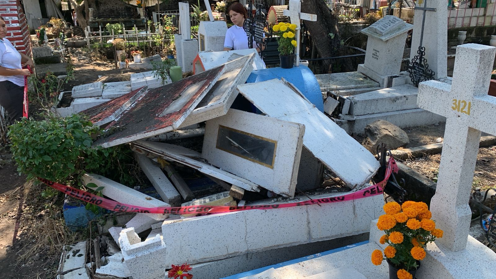 Con motivo de la tradición del “Día de Muertos”, personal de la Coordinación Protección Civil reforzaron los trabajos para delimitar las tumbas que presentan riesgos a fin de evitar accidentes a los visitantes que se prevé acudan con mayor afluencia los días 1 y 2 de noviembre.