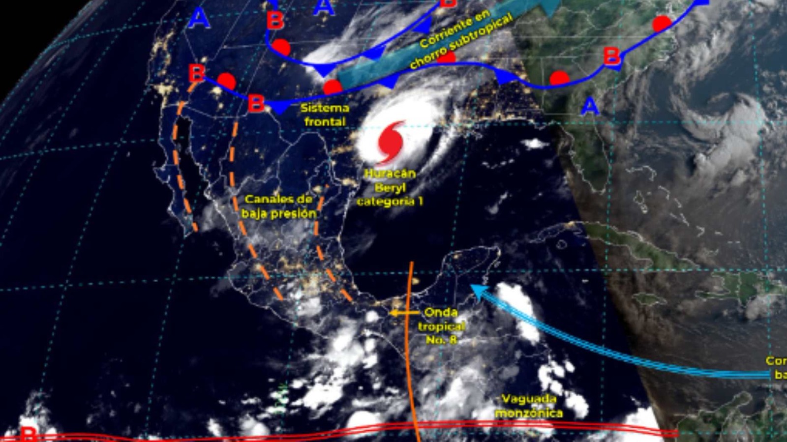 Este lunes, la onda tropical número 8 cruzará el sureste de México, según el pronóstico del Servicio Meteorológico Nacional de ese país. En conjunto con la vaguada monzónica cerca del Pacífico, se anticipan lluvias significativas en varias regiones: