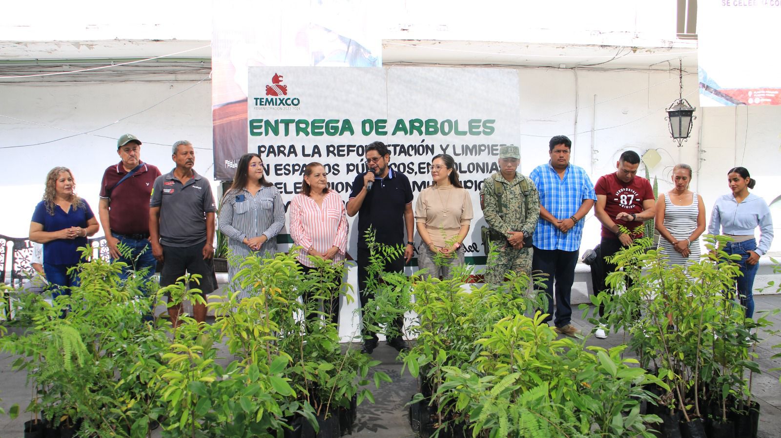 Como parte de los trabajos coordinados con la presidenta Municipal de Temixco Juanita Ocampo Domínguez y el general de Brigada Diplomado de Estado Mayor cmdte. de la 24va. zona Militar José Luis Bucio Quiroz, autoridades Municipio hicieron entrega de 300 árboles de diversas especies a ayudantes de diversas colonias y la delegada de Acatlipa Trinidad Armas para su plantación correspondiente.