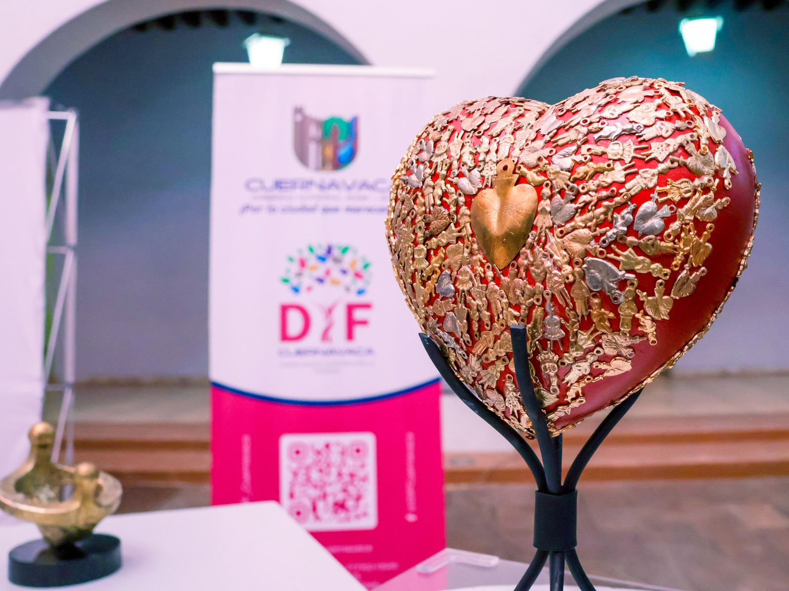 Al mostrar las esculturas de cerámica en forma de corazón que serán intervenidas, indicó que estas piezas representan los valores fundamentales de la institución, como son confianza, solidaridad, empatía, dignidad y respeto, pero más allá de su forma, llevan consigo un significado profundo. Además, el corazón, que simboliza el amor, la bondad y el afecto familiar o de amistad, se convierte en un lienzo en el que cada artista podrá dejar su huella.